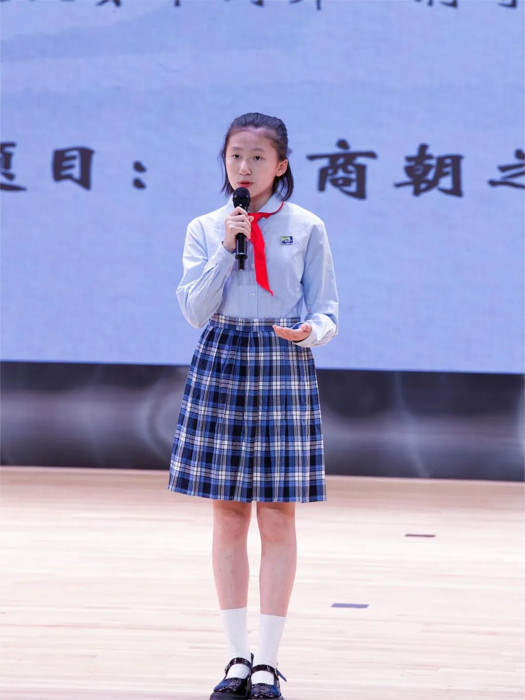 初一(3)班吴佩彤同学以《商朝之国神——比干》为题,认为比干具有大无畏精神,敢于反抗强权,捍卫自己的信仰和价值观,激励着我们要为国家的繁荣和民族的复兴而不懈努力。