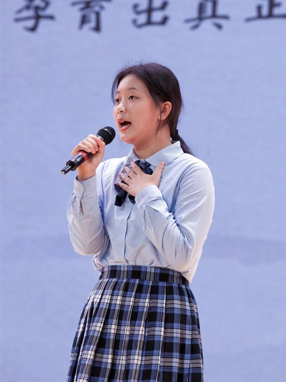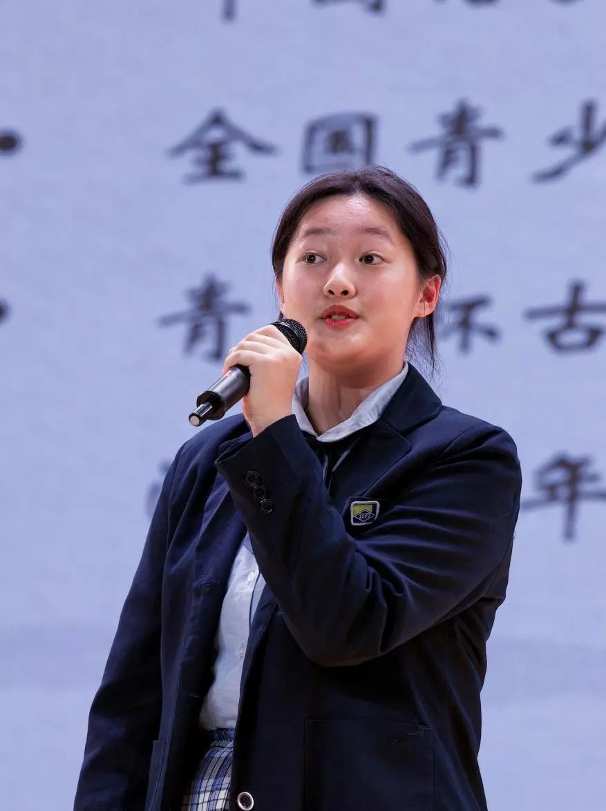 初二(2)班刘书萌同学以《生而逢盛世,少年当有梦》为题,呼吁我们应忠于心中仁义,弘扬祖国文明,奉献才学思想,习古人的贤仁智慧,承无穷无尽的千年文明精粹与不灭理想。