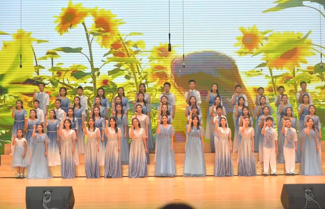 以美润心,为每一个学生搭建舞台,爱唱歌的学生们如盛开的花、如绚丽的光,站在舞台上,青春滚烫,自信飞扬。