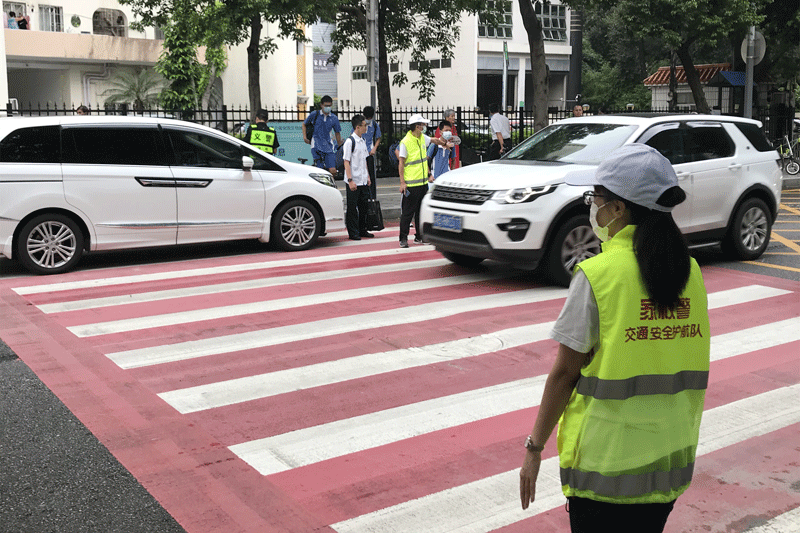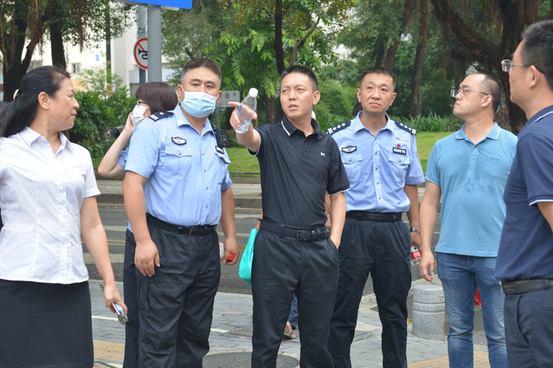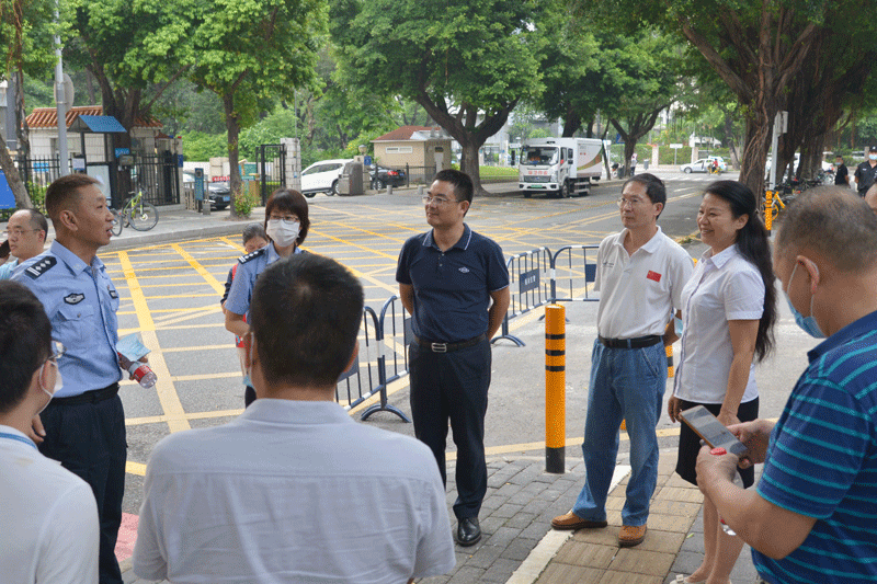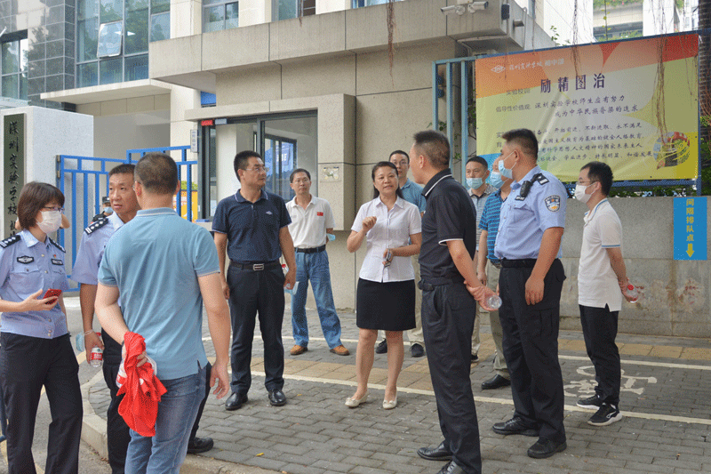 学校领导和社会相关安全管理部门高度重视学校面临的新问题。为了进一步排除安全隐患,确保全校师生的交通出行安全,9月2日下午3时,由冯维丹、邓旭两位副校长带队,集团安全主任张展波陪同,联合派出所林志强所长、李延如副所长、福田交管局纪辉兴局长、交警大队雷军队长、长城社区宋明阳书记、护校队刘国光队长以及卫生站、地铁施工相关负责人一起开展了一次联合实地安全考察、调研工作,并召开现场交通安全协调会,制定科学合理的交通疏导方案。