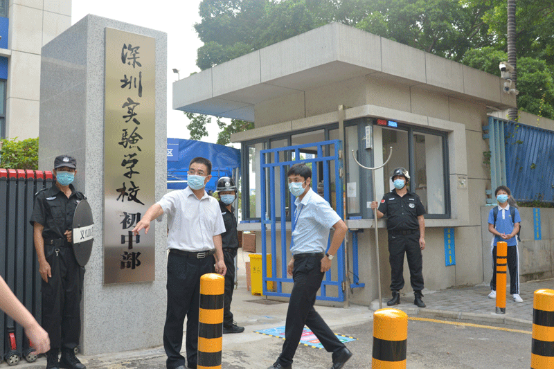 9月1日,新学期开学第一天,初中部全体学生怀揣梦想来到新校舍开启新的学习生活。深圳实验学校副校长邓旭携同初中部行政干部来到校门口热情欢迎同学们返校。学校物业、保安人员有序引导学生安全进入校园,由专人负责测量和记录每位学生体温,确认正常后进入主教学楼。交警、街道社区均派出了相关人员参与交通疏导工作,防止道路拥堵。学校联合社会力量共同为同学们安全返校保驾护航。