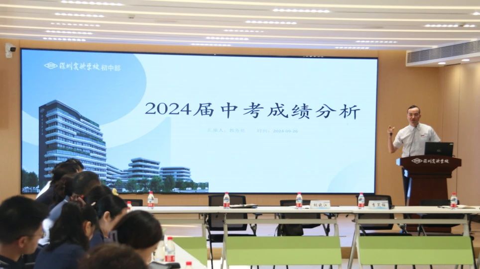 金秋十月,风霜高洁,正值收获季节。9月26日下午,深圳实验学校初中部举办了新老初三教师交流会,总结经验、传授心得、展望未来。会议由教务处副主任彭伟琼主持,教务处主任邰士剑、学生处主任徐枫、初中部执行校长李笑梅,以及深圳实验教育集团教育教学部主任胡晓江出席了会议。本次会议分为四个环节:学业成果分析、经验传承、新初三展望和领导讲话。