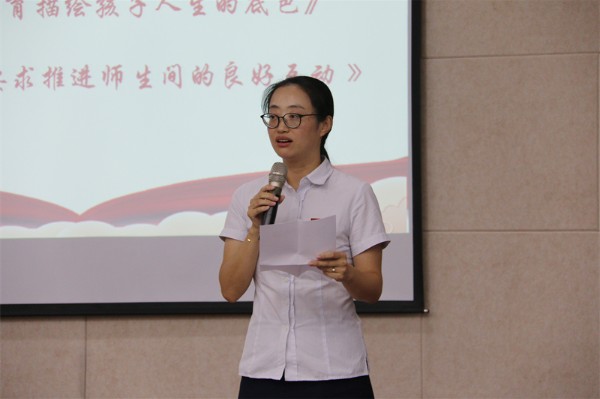 教师责任重大,使命光荣!习总书记希望广大教师不忘立德树人初心,牢记为党育人、为国育才使命,积极探索新时代教育教学方法,不断提升教书育人本领,为培养德智体美劳全面发展的社会主义建设者和接班人作出新的更大贡献。团委书记王媛在以《用德育描绘孩子人生的底色》为主题的发言中表示要牢记教书育人的使命,全面关怀学生的成长,培育他们善良的品性,让这个世界因我们的努力发生向上向善的变化,变得更美好更温暖。资深教师郭要弟在发言中表示,在日常教学中要善于激发师生间的良好互动,认真总结每一节课的得与失,把上好每节课当作教师最真挚的幸福来源。
