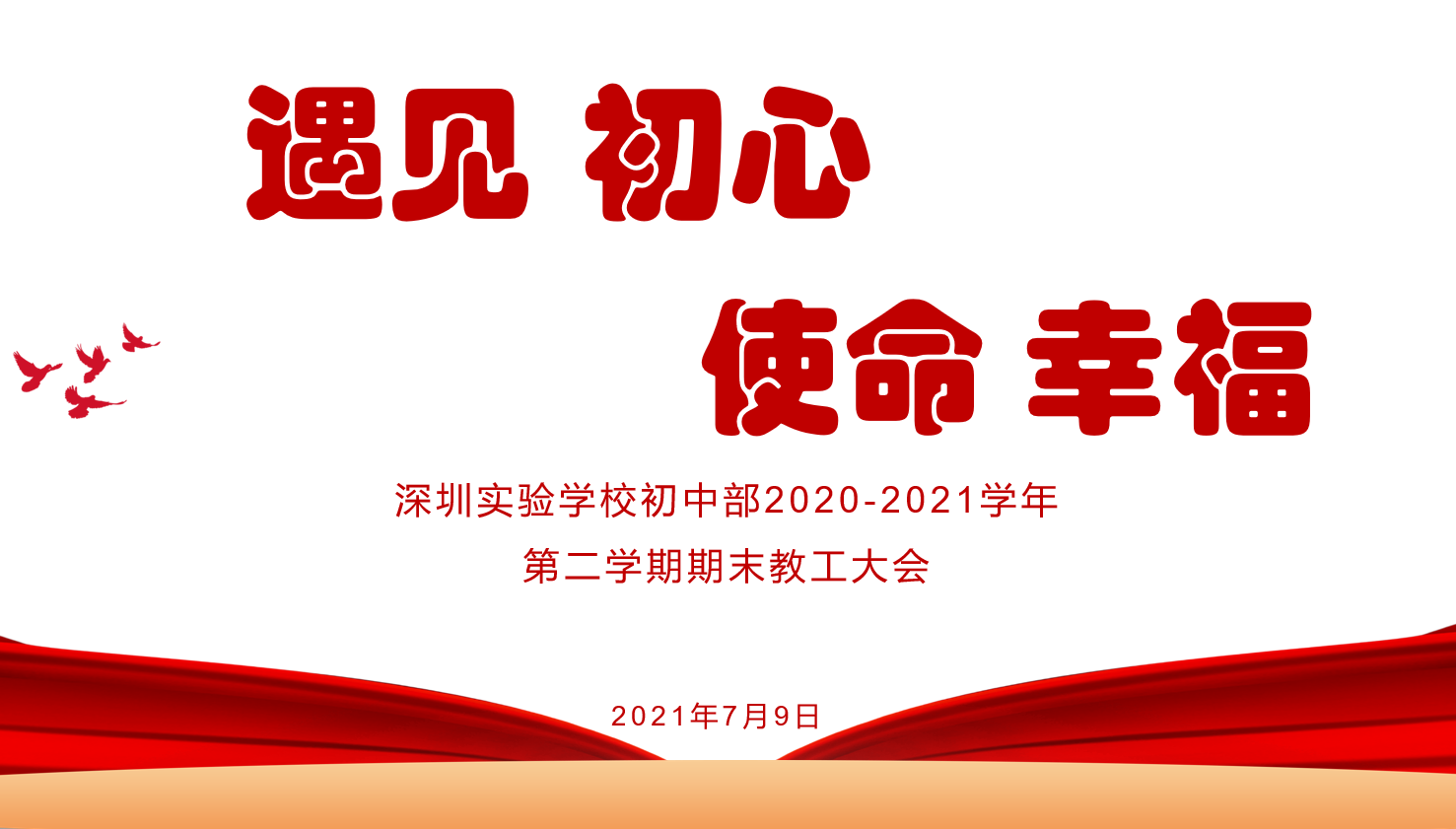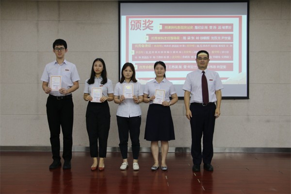 2021年7月9日下午2:30,初中部召开了2020-2021学年第二学期期末教工大会。对一学期以来在各项工作中表现突出的老师进行了表彰。通过“遇见、初心、使命、幸福”四个关键词表达老师们的教育情怀和对未来美好教育愿景的展望。