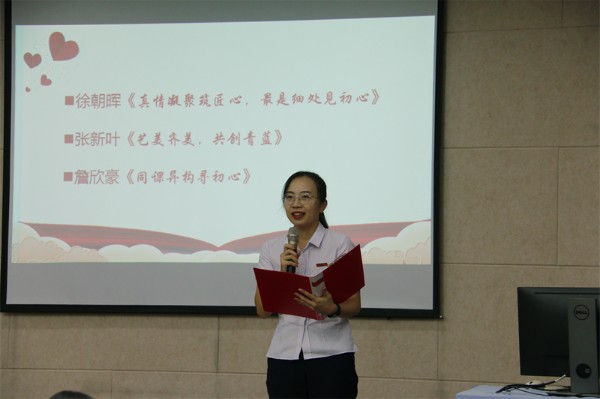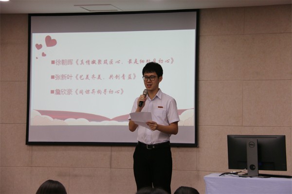 不忘初心,方得始终。抛开一切世俗的附加,我们所坚守的信念和本心是最为宝贵的,它存在于向善、向美、向真的追求当中。科学学科主任徐朝晖以“真情凝聚筑匠心,最是细处见初心”为主题的发言,总结了本学期科技节从准备到实施的全过程,体现了老师们传承实验学校精细务实的工作作风、“把一件工作、一项事情一丝不苟地做到极致”的信念和情怀。艺术学科主任张新叶以《艺美齐美,共创青蓝》为题讲述初中部举办校园文化艺术节不变的初心。表达青年教师以实验为傲,勤勤恳恳、兢兢业业、踏踏实实做人做事,携手“共创青蓝”的愿望。多次参加同课异构的詹欣豪老师分享了自己参加活动的经验和感想,他认为作为数学老师,要教数学知识的发生过程和数学探究的思维方式,要引导学生以数学的方式来做数学,更要让学生通过数学探究人人有所收获。他表示要时刻勉励自己不忘初心,在教学路上不断探索。