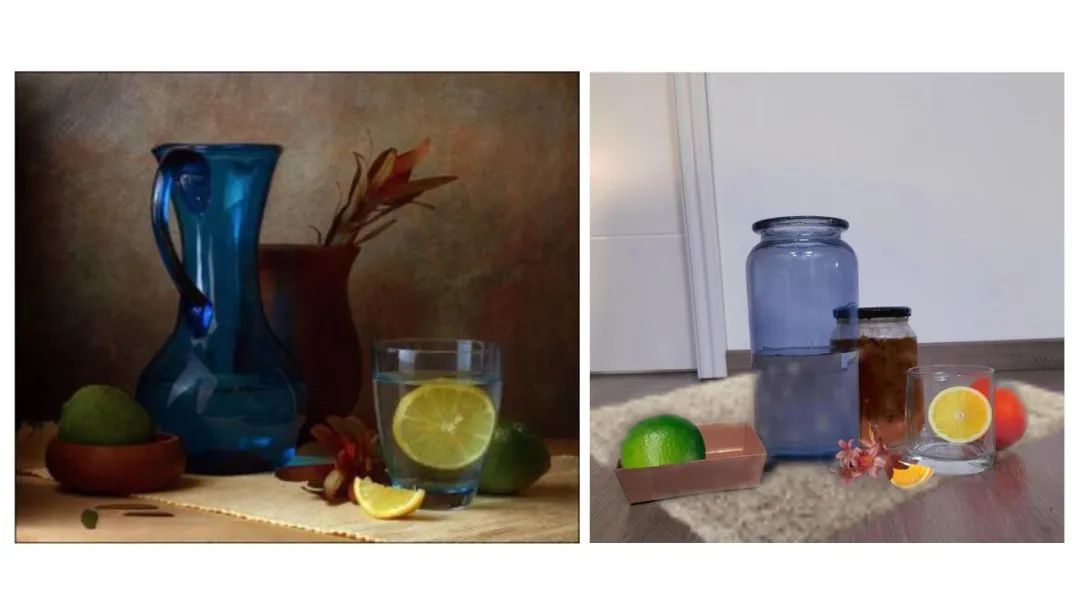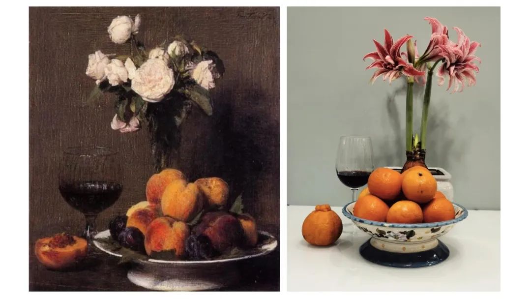 构图是造型艺术重要的表现手段之一。初一年级的同学们在了解与学习了静物画的构图知识之后,通过临摹大师油画作品中的构图,创作出精美的静物摄影作品。在拍摄过程中,同学们仅运用了生活中的简易物品,结合物品的形体、大小、空间位置等要素,就创造出均衡之感、空间之美。