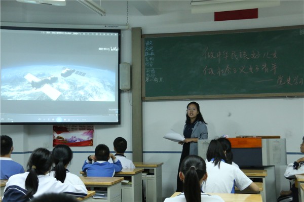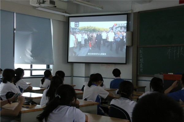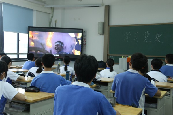 课上,首先由“人民英雄纪念碑”的碑文引入,将国家的近代史和党的发展史结合起来,通过抗日战争和里约奥运会错用国旗等有代表性的事件,让同学们感受全国人民在党的坚强领导下,齐心协力对抗外敌的团结一致以及在斗争中体现出的勇敢、坚毅等民族精神,激发同学们爱党、爱国热情。播放了鸦片战争等多个视频,通过学习为新中国的建立付出艰辛努力的仁人志士事迹,让同学们在缅怀先烈的同时更加珍惜现在的美好生活。