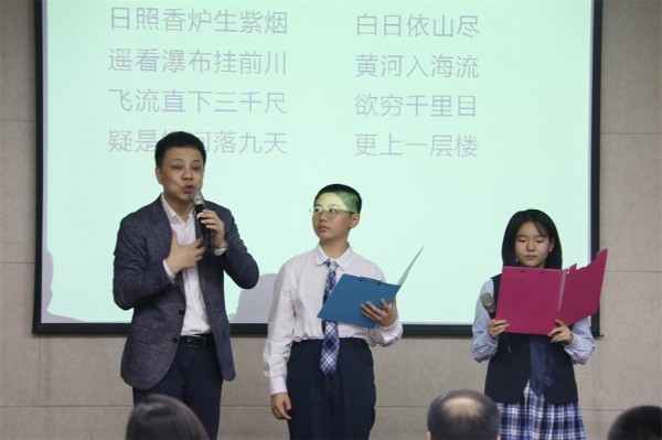 最后的实践环节。同学们上台深情朗诵提前准备好的诗文,令大家印象深刻的是一位同学所朗诵的《蜀道难》以及另两位同学联手朗诵的《寻李白》,情感充沛,感人至深。还有一位小学一年级的小男孩,当场背诵了《木兰辞》,大家都不禁为他喝彩鼓掌。每位同学朗诵结束,吴老师都一一加以认真的点评。
