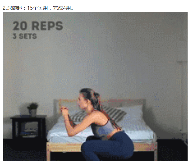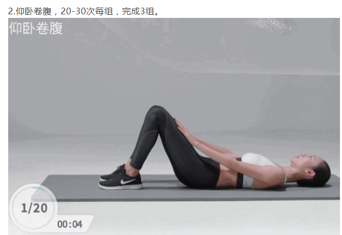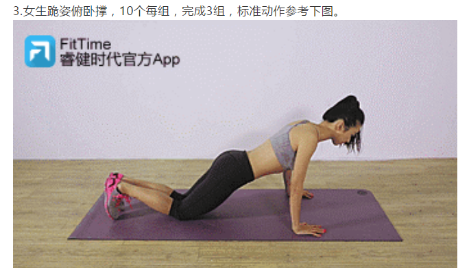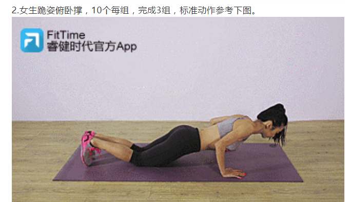 2.女生跪姿俯卧撑,10个每组,完成3组。