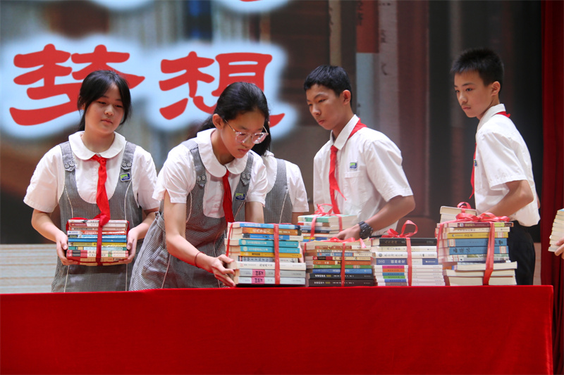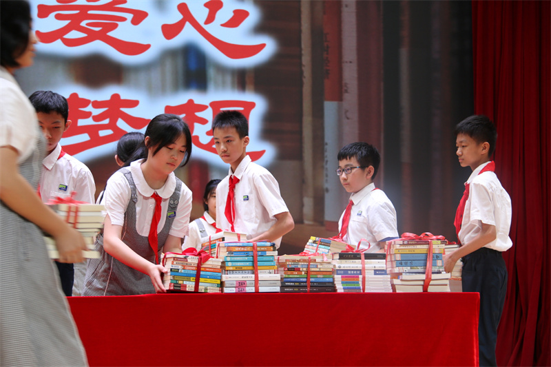此次晨会以书赠友、以书润心,是“文化润疆、教育帮扶”的生动体现。(文/初二(1)班 胡润桐 图/曾晨怡)