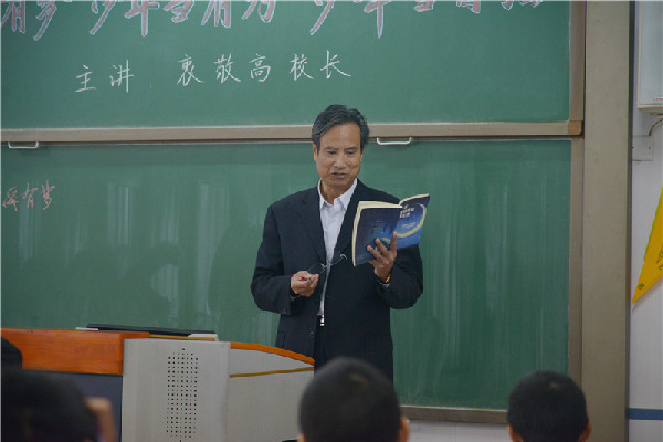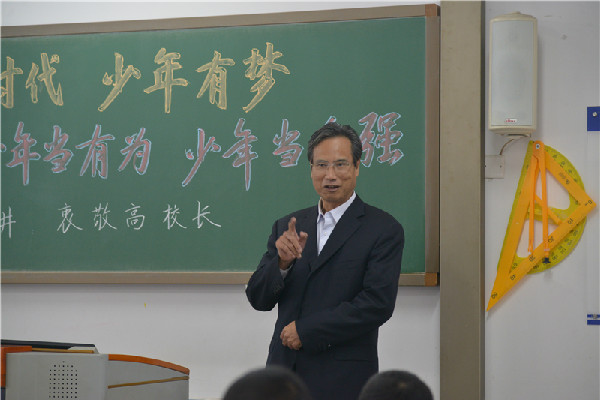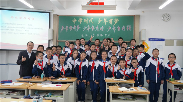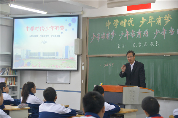 衷校长首先用“中学时代如何度过?”“中学时代是有梦的年代,你们的梦想是什么?”“为何要有梦想?如何实现自己的梦想?”几个提问开始了本堂思政课。接着,引用班级图书角的《别在吃苦的年纪选择安逸》一书中的一段话告诉同学们:苦才是人生的真谛。人生没有白吃的苦,你吃过的苦终将照亮你前行的路。“同学们,你们生活在一个伟大的时代,坐享改革开放之成果和幸福生活。尤其在今年的新冠肺炎疫情中,你们得到了国家最安全、最有效的保护……”衷校长动情地阐释了党和国家在这次抗疫中所彰显的中国精神和中国担当。并从陆游的“王师北定中原日,家祭毋忘告乃翁”、文天祥的“而今别却江南路,化作啼鹃带血归”,再到周恩来的“为中华崛起而读书”,旁征博引,引经据典,层层递进,勉励同学们除了要有考上名校、拥有健康体魄、成功的事业等美好个人梦想以外,还要有家国情、报国志和中国梦!