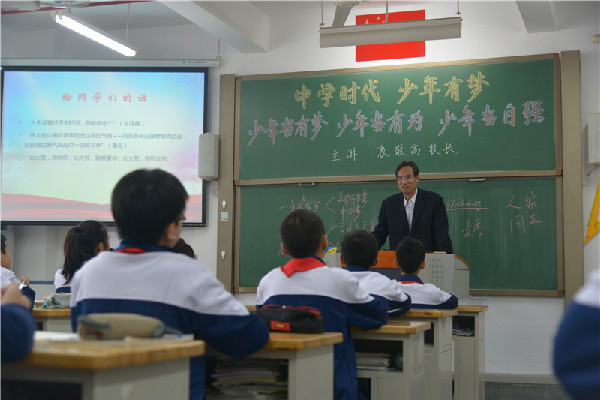 ——我校党委书记、校长衷敬高走进初中部初一(7)班讲授思政课