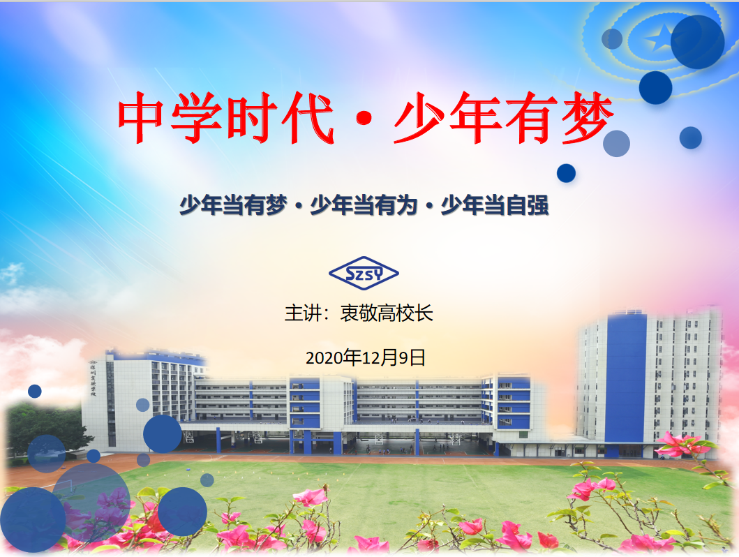 少年有梦,国家才有希望。12月9日上午10:30,我校党委书记、校长衷敬高走进初中部初一(7)班讲授主题为“中学时代、少年有梦”的思政课。围绕“少年当有梦”“少年当有为”和“少年当自强”三个部分引导同学们要心怀“梦想”、要敢于“追梦”、要有崇高的“使命担当”。深圳实验学校邓旭副校长和初中部行政干部、思政课教师等一同聆听学习。