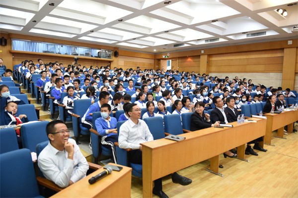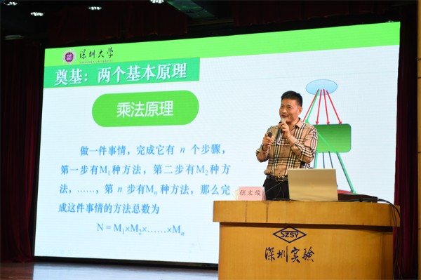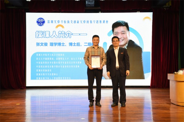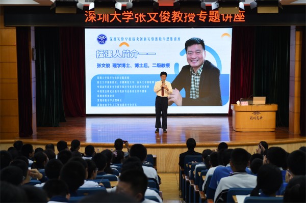 2021年12月9日下午,深圳大学数学与统计学院院长张文俊教授莅临深圳实验学校,在中学部小礼堂给初二年级的同学们带来了一堂生动的数学思维课。