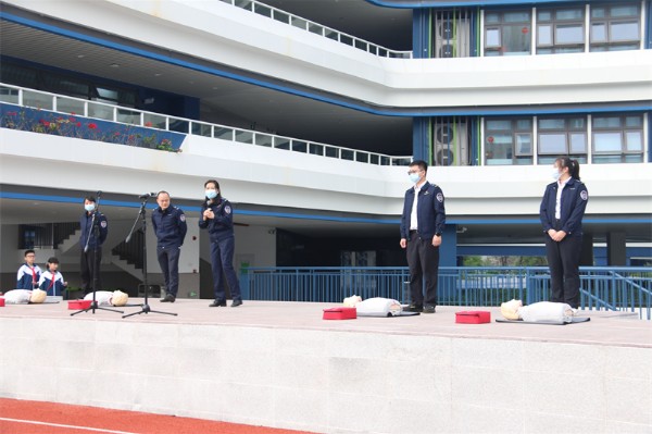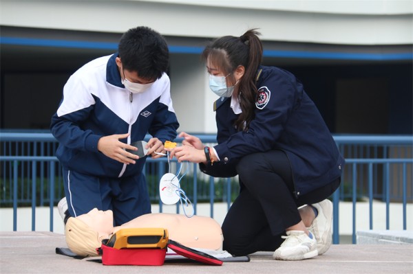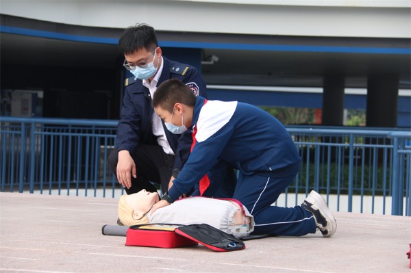 健康生活、守护生命,需要掌握一定的急救知识和技能,才能沉着应对日常生活中的突发情况。深圳市急救中心培训部乔老师和同事们,专程赶到初中部,为全体师生示范心肺复苏术和AED自动体外除颤仪的使用方法。
