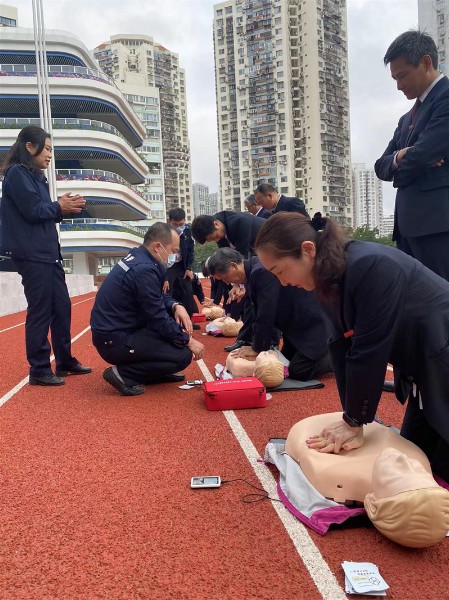 晨会后,疾控中心的老师们专门为校医和体育组老师开展了一对一培训,确保每一位老师都掌握急救规范流程和操作,在意外来临,能够挽救生命于千钧一发之时。未来,初中部将与急救中心加强进一步合作,将更多的急救课程引入校园,增强全体师生的紧急救援技能。