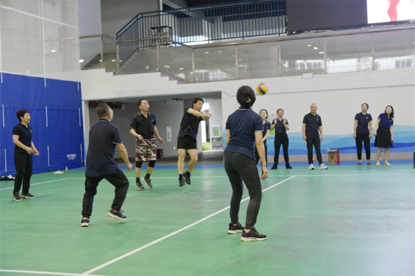 “跃”运动,“悦”健康 。为丰富教职工文体活动,提高教职工身体素质,推动教职工以更佳的身心状态肩负三尺讲台育桃李的重任。初中部首届教职工排球赛于7月4日拉开帷幕,教职工们一跃而起,奋勇直击,在排球赛场展现飒爽英姿。
