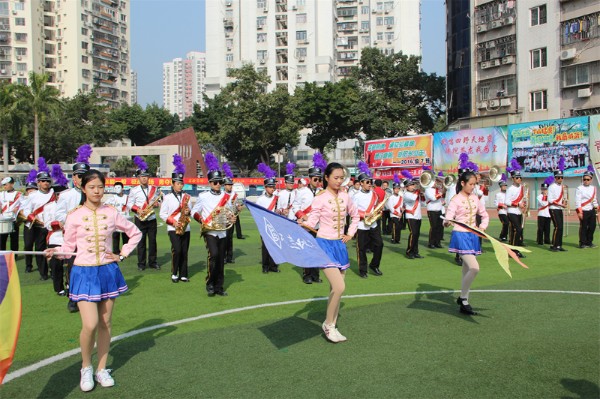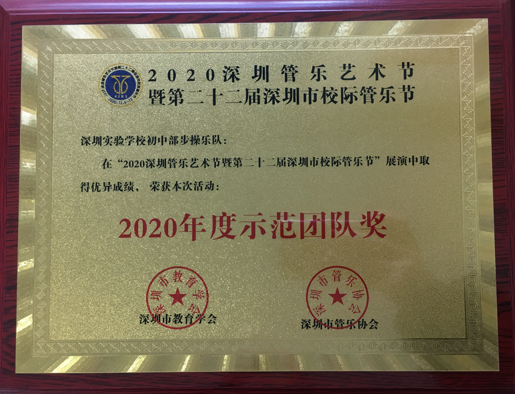 初中部步操乐队成立12年来,在学校领导的大力支持下克服困难发展壮大,已经成为深圳市行进乐团的领头羊,在历届比赛中勇夺金奖,我们将牢记实验校训“励精图治”,弘扬“永不满足”的实验精神,争取再创佳绩。(文、图/杨文政)