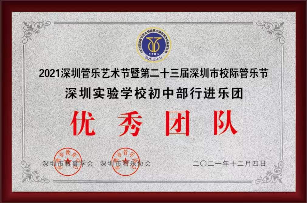 初中部步操管乐团继去年参加深圳市第22届校际管乐节取得“示范团队”奖后,今年又在该赛事行进组中获得最高奖——“优秀团队”奖!