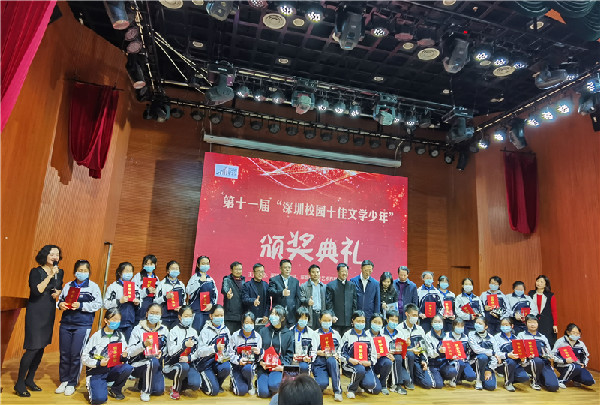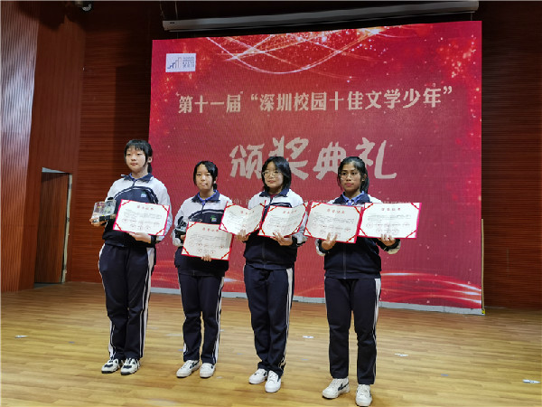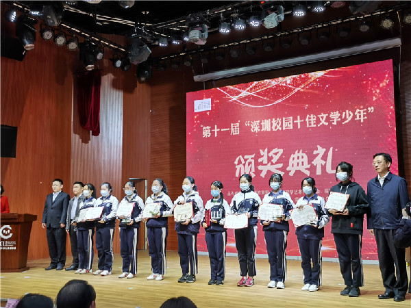 2020年12月30日,由深圳市教育局、深圳市文联、深圳特区报社、深圳读书月组委会办公室、深圳市阅读联合会主办的第十一届“深圳校园十佳文学少年”评比活动表彰大会在深圳市少儿图书馆隆重举行。深圳实验学校初中部谢开妍同学从全市两万名参赛者中脱颖而出,荣获“深圳校园十佳文学少年”称号;陈鹏宇、陶昱熹两位同学获评“深圳校园优秀文学少年”;吴惠娟、余明发两位老师荣获“优秀辅导老师奖”。