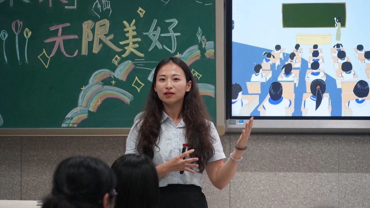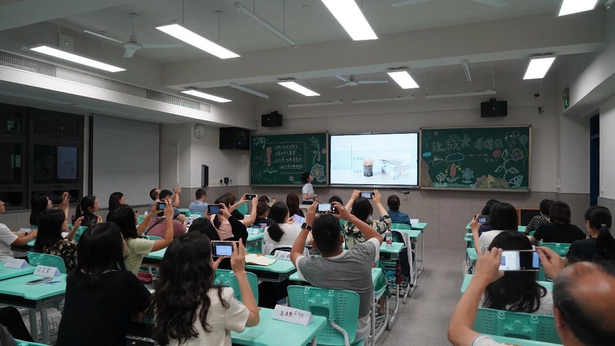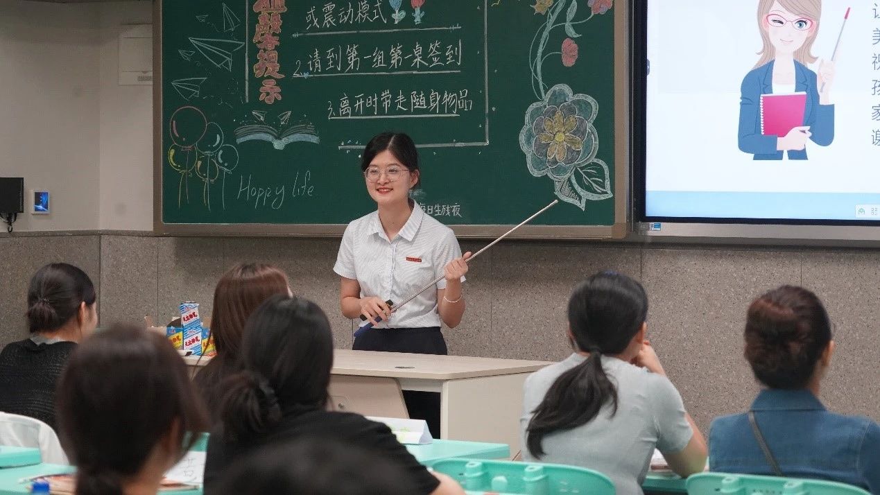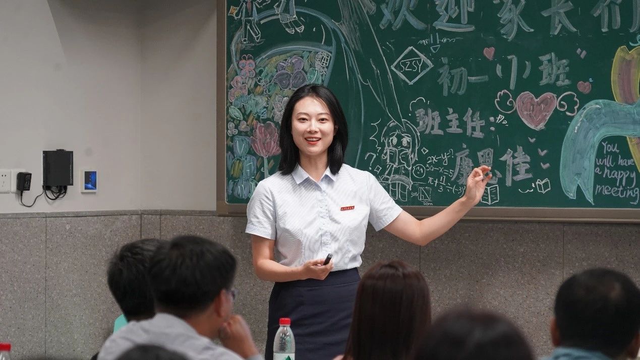 教室里,科任老师总结孩子们开学一个多月以来的学习情况,介绍了各自的教学理念、教学成果,并表达了对孩子们的期待。