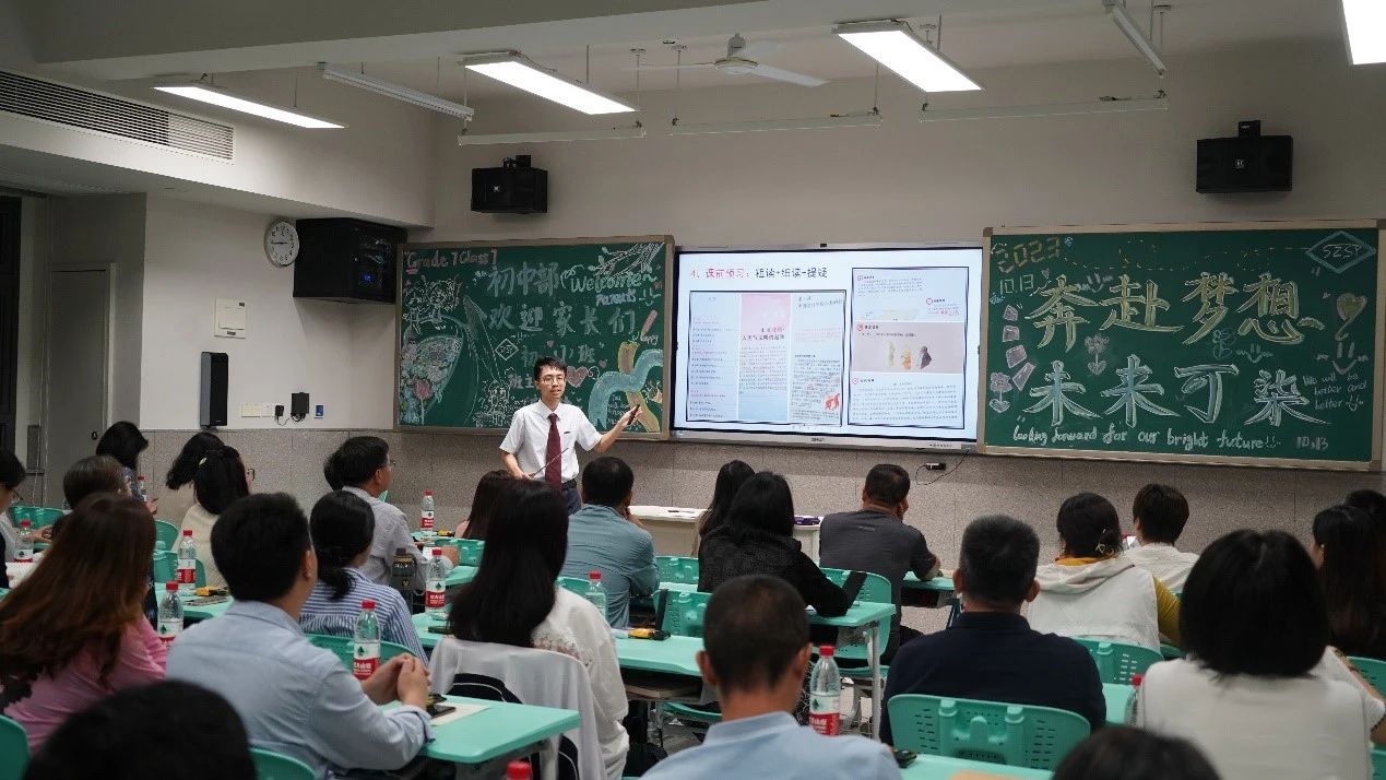 10月13日19:00,深圳实验学校初中部召开了初一年级家长会,初中部行政团队、初一年级班主任和科任老师为此次交流精心筹备。
