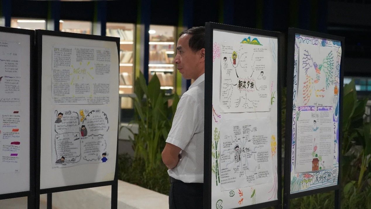 大会后,家长们来到各自孩子的班级,在班主任和同学们精心布置的教室里,倾听科任老师们的授课分享。班级之外的走廊上,家长们仔细欣赏孩子们的精彩作品。