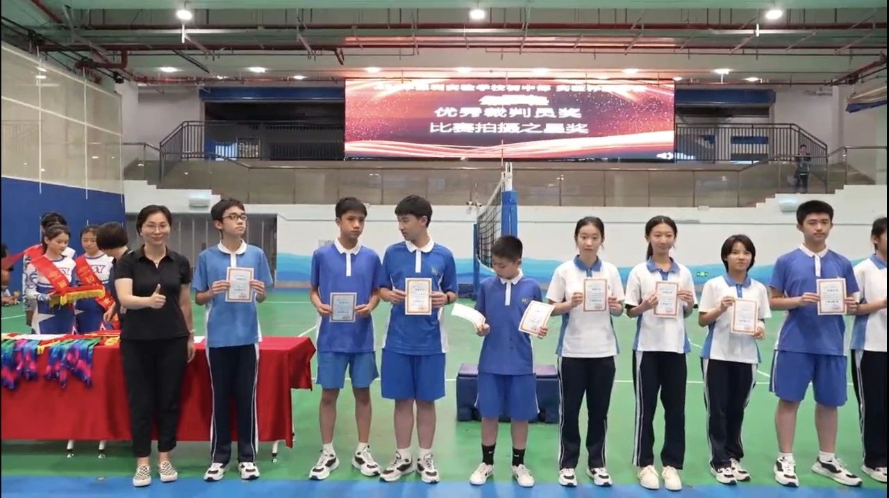 初中部为本次比赛获奖班级和个人举行隆重的颁奖仪式,让参赛同学感受比赛的成功喜悦和体育赛事的高光时刻。颁奖仪式上,初中部海豚啦啦操队的表演让现场气氛热烈激昂,充满青春气息。