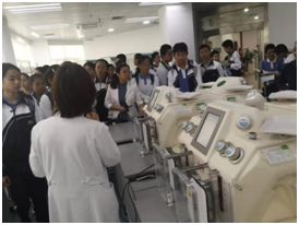 工作人员带领同学们参观了血液中心的机采大厅,见到了由我们深圳90后研制的采集全血的高科技采血机和机采成分血的采血机,以及正在进行无偿献血的志愿者们。