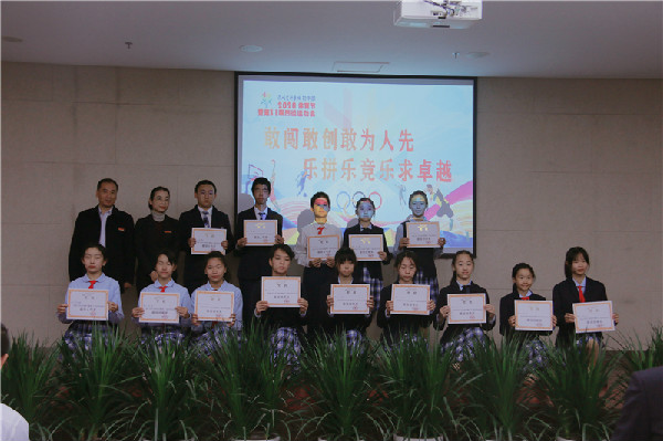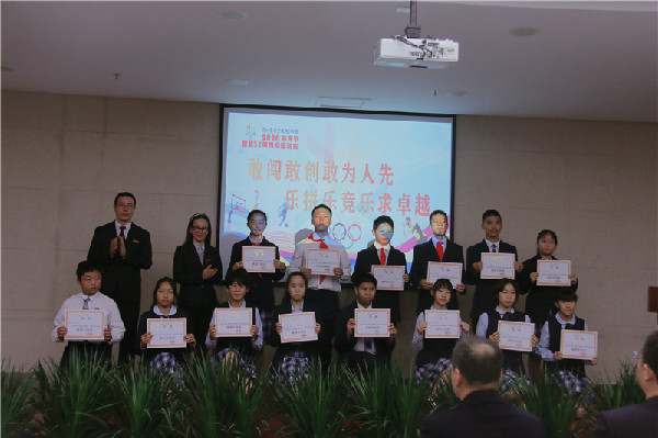 12月8日,初中部在一楼多功能厅召开体育节闭幕式主题晨会。获奖班级学生代表和老师们齐聚一堂,共同见证本次体育节所取得的成绩。初中部行政领导为开幕式表演优胜奖、突出贡献奖、团体总分获奖班级和破纪录同学隆重颁奖,场面激动人心、气氛热烈。随后,学生处徐枫副主任致词并宣布体育节圆满闭幕!