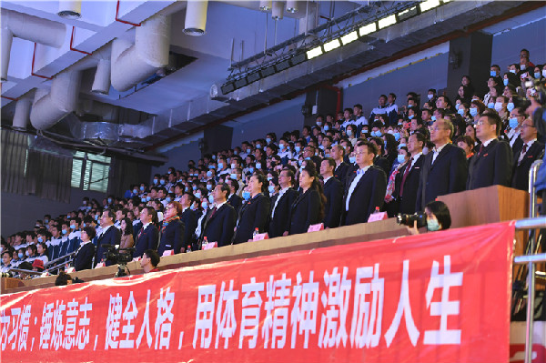 12月4日下午3时,初中部2020年体育节暨第三十一届田径运动会开幕式在中学部文体馆隆重召开。深圳实验学校衷敬高校长出席开幕式,集团总部和各兄弟学部领导光临现场。初中部学生处张楠主任主持开幕式,整场活动还通过网络直播平台公开直播。初一年级为观众带来了以“改革潮、家国情、体魄健”为主题的表演,充分展现了他们对于体育精神和家国情怀的理解。初二年级以各班组为单位,表演风格或刚或柔,或传统或现代,尽显实验学子的青春风采。特别是年级集体舞表演,将全场氛围推向了高潮。初三年级男女生分别组成旗队和花队,7班担任特色表演队。他们气宇轩昂、英姿飒爽、富于创新精神。开幕式表演历时一个小时,这样一场视听盛宴,浓缩了校领导的悉心指导、全体师生以及物业的共同努力和学生家长的热情参与,彰显了气质卓然的实验风采和高效协作的实验精神。随后,衷敬高校长宣布初中部田径运动会开幕。邓旭副校长致开幕词,他特别强调,初中部将继续弘扬以爱国主义为核心的民族精神和以改革创新为核心的时代精神,继续发扬敢闯敢试、敢为人先、埋头苦干的特区精神,坚持“健康第一”的教育理念。希望同学们在体育节和今后的体育锻炼中享受乐趣、增强体质、健全人格、锤炼意志,让体育锻炼成为习惯,用体育精神激励人生!