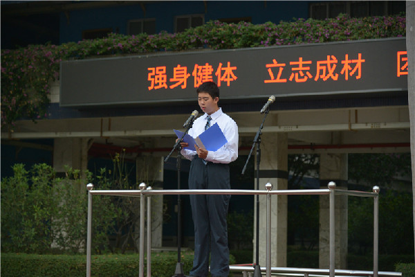 11月30日的主题晨会开启了今年体育节的序幕。初三(2)班周子涵作为学生代表发言,分享了他练习中考体育项目——引体向上的经验和体会。从开始的一两个到现在的近二十个,他的进步极大地鼓舞了其他同学。他用行动诠释了“突破来源于坚持”“拼搏才能无悔青春”。