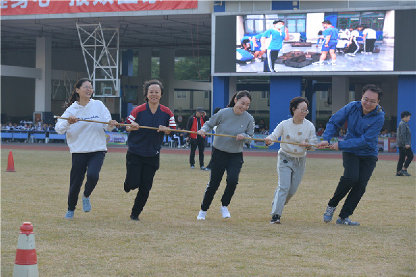 5日8时,随着广播检录的开始,运动会比赛项目顺利进行。赛场上,运动员们挥洒汗水、为集体争光;观众席上,热心的拉拉队员和老师们奋力呐喊,为运动员们加油助威;裁判席上,一个个黄马甲认真细致地记录着比赛的成绩,尽心尽力地履行着自己的职责;赛场边,也有一些跑动的“红马甲”,全力维持赛场的秩序,默默地贡献着自己的力量;绿茵场上的蓝马甲,手持相机,时而半蹲、时而趴着、时而奔跑、时而静立,“咔咔咔”地捕捉运动员们英姿飒爽的身影和同学们的欢乐瞬间。本次运动会的顺利开展,有赖于家长的积极参与,后勤人员的各方保障,所有老师尤其是体育老师的认真准备以及组委会的精心策划。运动场上比拼的,不仅有学生,还有亲爱的老师们。教工趣味运动比赛项目在篮球场和足球场展开,老师们在比赛中收获了运动的乐趣和身心的放松。