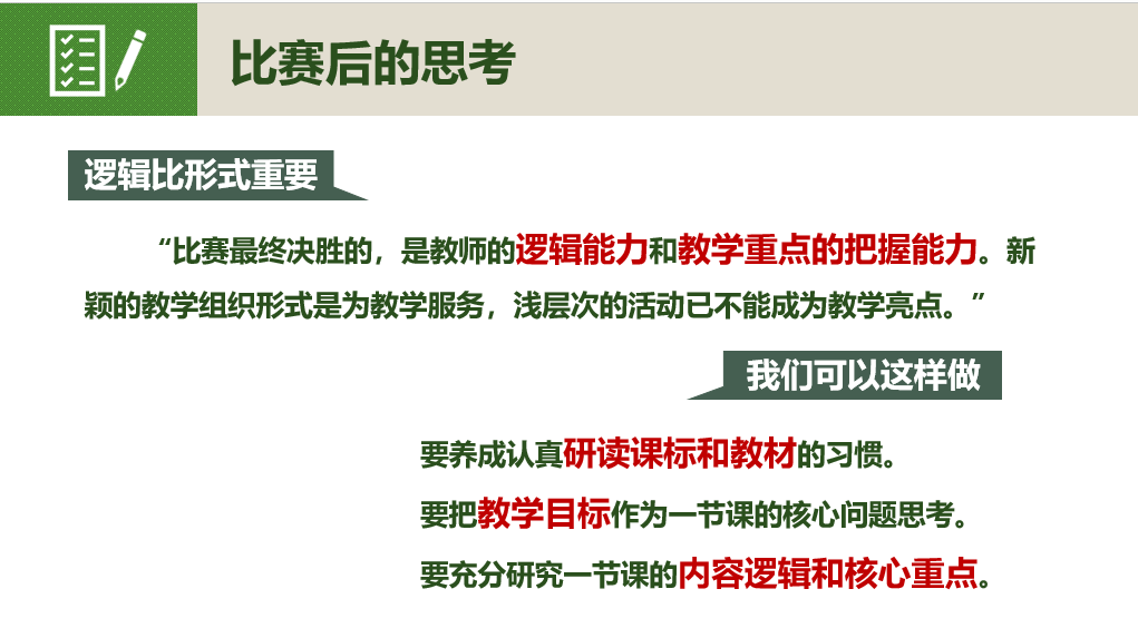 在2020年深圳市青年教师基本功大赛中荣获一等奖的杜文正、叶成、李茜雯三位老师分享了参赛经历和感悟。杜文正老师谈到“一堂课的逻辑比形式更重要,对课标的解读,对教学目标的设定,是上好一堂课的核心。青年教师要时刻保持学习的状态,坚持将学科组内的听课、磨课作为日常功课,积极参与校内外教研活动,充分利用交流平台汲取团队的智慧”;叶成老师谈到“在比赛中她得到了团队的强力支持,她将继续在工作中多向前辈老师学习,潜心钻研,严谨认真备好、上好每一节课,不负学生,不负自己”;李茜雯老师谈到“比赛是对自己教学、教研水平的一种极大提升,痛苦而又有收获的过程加快了自己成长的步伐。自己将在今后的成长道路上不惧挑战,以仰望星空和脚踏实地的工作态度追求更高、更广阔的教学领域。”老师们的精彩分享让大家受益匪浅。他们是初中部青年教师的代表,他们勤奋刻苦、勇于创新、大胆实践,他们在资深宝藏教师的倾囊相助和悉心指导下,用自己的坚毅、敬畏和智慧,不断地自我提升和自我超越,共同推动学校的进步和发展。