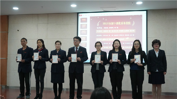 为表彰先进,树立典型,大会首先为在本学期获得优异成绩的教职工举行了简朴而隆重的颁奖仪式。优秀命题员、优秀备课组、优秀社团指导教师以及在初中部青年教师基本功大赛、深圳市微课大赛、“京师杯”全国微课大赛、深圳市青年教师基本功大赛中获奖的老师们依次走上领奖台。当接过沉甸甸的荣誉证书时,老师们的脸上无不洋溢着幸福的笑容,这是对他们一学期辛勤付出的肯定与褒扬。接着,大会分三个部分对本学期的工作进行了回顾、思考和展望。