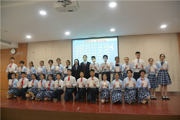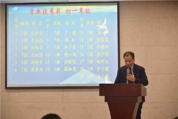 本学期,同学们不仅在各项活动中表现优异,学习中更是刻苦钻研,认真努力,在学业上取得了可喜的进步。教务处王洪吉主任宣读了本学期获得“学业优秀奖”和“学业进步奖”的学生名单。王洪吉主任、胡晓江副主任和总务处石占虎主任先后为获奖学生代表颁奖。学生处张楠主任宣读了本学期学生处表彰决定,其中包括了三好学生、优秀干部和红旗班集体获奖名单。张楠主任和徐枫副主任为获奖学生代表颁奖。最后,邓旭校长为荣获红旗班集体的各班代表颁奖。