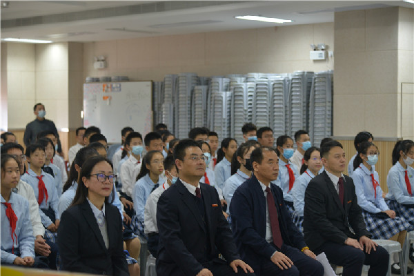 1月22日早上8:30,初中部全体教师和获奖同学代表齐聚一楼多功能厅,隆重举行初中部2020-2021学年度第一学期休业式,班主任老师组织学生在班级教室观看直播。
