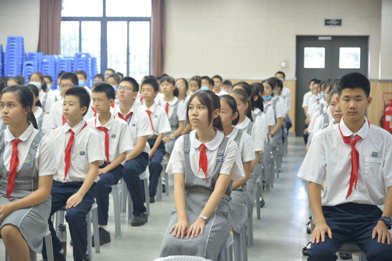 2020年9月29日下午,初中部初一新生教育月总结大会在一楼礼堂隆重召开,主会场和分会场同步进行。大会由年级主任彭伟琼老师主持,深圳实验学校邓旭副校长,学生处张楠主任、徐枫主任,教务处王洪吉主任、胡晓江主任以及初一全体师生参加了大会。