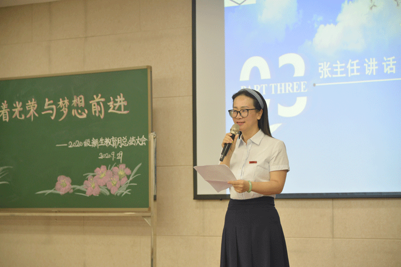 接着,优秀学生代表李佳华同学发表了感言,他与同学们分享自己来到实验以后的各种观察、思考、收获与决心。在这短短一个月的时间里,同学们领悟着实验校训“励精图治”的内涵,感受着实验“健全人格教育”的魅力。张楠主任在给同学们的讲话中提出了三点建议:1.调整心态。寻找自己的位置,充满希望向前冲。获得了荣誉不要沾沾自喜,即使失败也不要灰心丧气,保持心态的平和。2.谨记规则,遵守纪律。要明确自己能做什么,不能做什么,制定出行动目标,不断完善自己。她希望每个班级都树立良好班风,同学们之间互帮互助,强强联手,共同创造优秀集体,绽放精彩。3.心平气和,心胸开阔,与人和善,尊重和理解他人想法,养成良好素养。张主任的讲话给同学们开启新的校园生活作了清晰的指引。