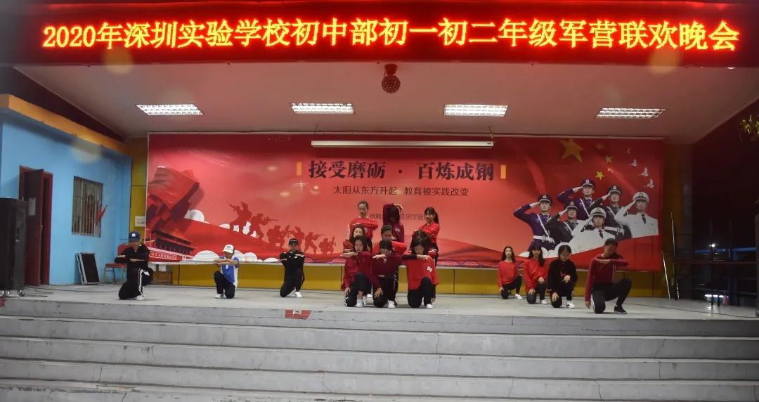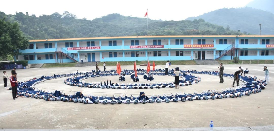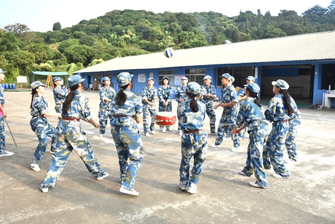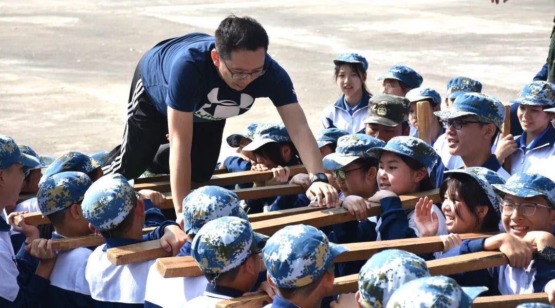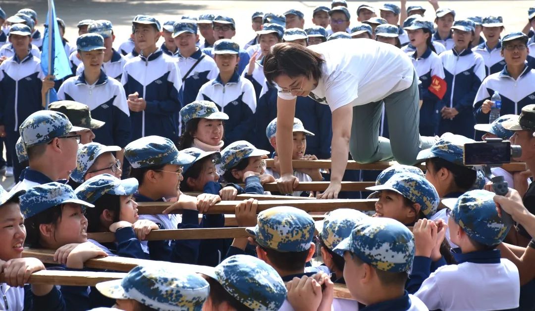初二年级的同学们在基本的军事化训练以外还进行了让人受益匪浅的团建活动:“鼓舞飞扬”活动中,十几名同学取长补短,团结协作完成同一个目标。虽然一开始配合的很困难,但大家都不怕挫折,不断改进,在指挥员的带领下完成了任务;“生命动力圈”把全体初二同学的心聚在一起,同学们坐成三个圈,随着一声声坚定的口令摇着绳子,队长们在内圈挥旗奔跑,一边跑还不忘为同学们加油鼓劲,一圈、两圈、三圈......终于摇完了2020圈。同学们躺在地上,望着蓝天,仿佛空气都弥漫着一丝香甜,每个人都握住自己身边人的手,感受他人的付出,或许你的同学坐在圈的对面,但心却被那根麻绳给连在了一起;让人记忆最深的就是团队浮桥,全班被分成两路纵队,面对面站好,每两个人用同侧的肩膀撑起一块木板,啦啦队长站在最前面的桌子上带领大家呐喊助威,有两名同学成为“肉垫”在木板下保护同学,让每一位同学都能安全顺利地爬过木板浮桥。当教官宣布第一名同学开始爬时,每个人都坚定地点了点头,握紧了肩上的木板,随着啦啦队长的高呼加油,渐渐地,大家的嗓子都哑了,不停地靠吃润喉糖保护嗓子。每次的加油声不仅是给那些正在爬的同学,也是在给支撑的同学力量。最后,同学们都邀请班主任老师和教官一起爬浮桥,每当他们爬过一块木板,大家就用发自肺腑的力量高喊:“老师加油!教官加油!”那一刻,稚嫩的肩膀撑起了一个成年人的重量;舞蹈《你笑起来真好看》让初二同学重新体会了微笑的力量,音乐响起,大家都笑了起来。在艰苦的军训生活中,笑容让人身心愉悦放松。