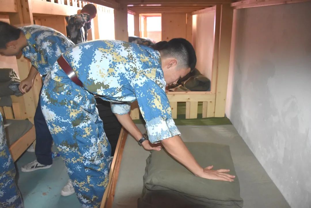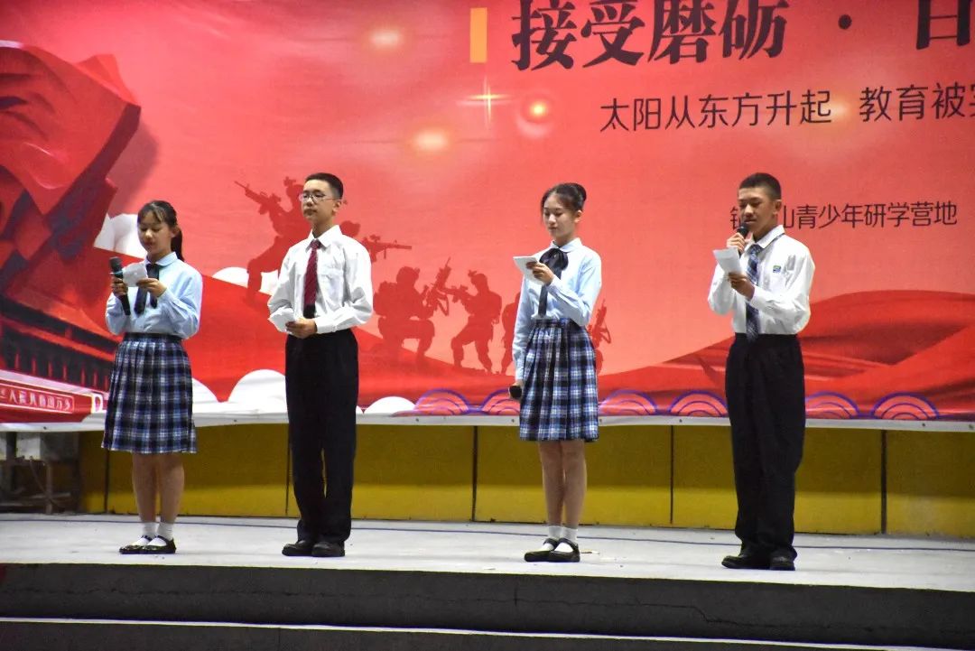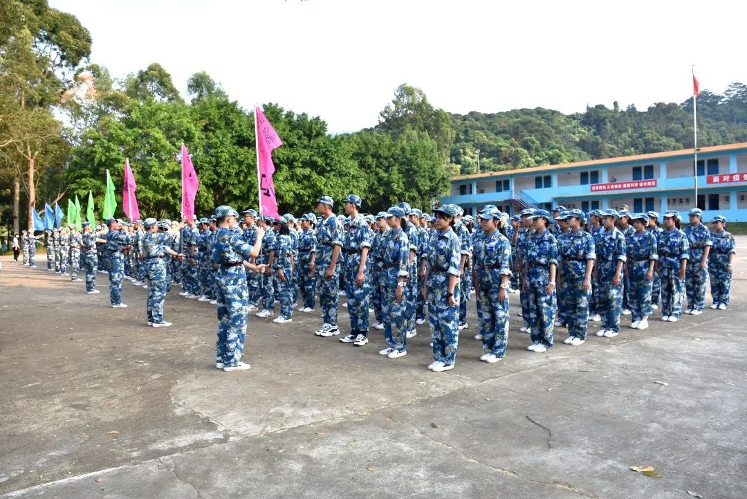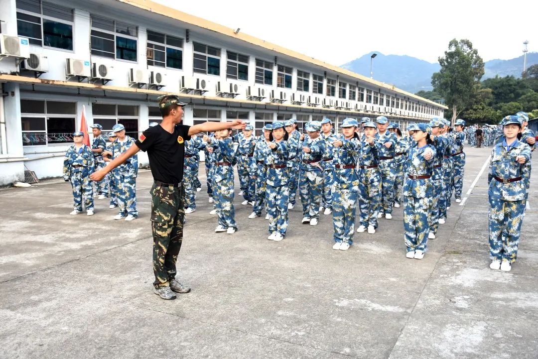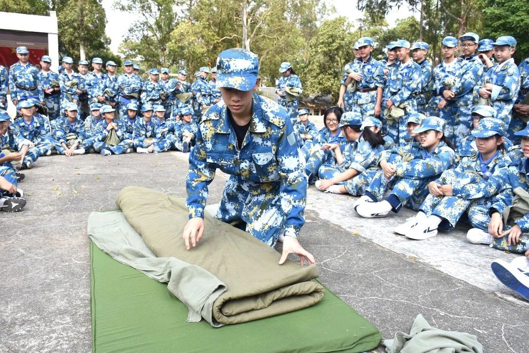 同学们来到军训基地后的第一件事就是迅速换上军训服,参加基地举办的开营仪式。接着,就马不停蹄的开始了最基本的训练:立正、稍息、齐步走、停止间转法。一个上午转眼就过去了,带着初到的兴奋与训练的疲惫,同学们来到了食堂。第一顿午餐是最让人期待的,同学们不抱怨、不吵闹,有秩序地享用基地自给的农家菜。然后又是一下午的训练。晚饭后,同学们排好队去洗澡、洗衣服,这是他们在家从未有过的体验,独立完成自己的内务,并整理好宿舍卫生。由于各连都有竞争积分制,所以大家都憋着一股劲,忍着身体上的酸痛,努力为了集体做到最好。全年级几天下来,没有一位同学选择退出,全部坚持到最后,真是让人欣喜。