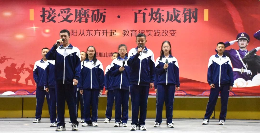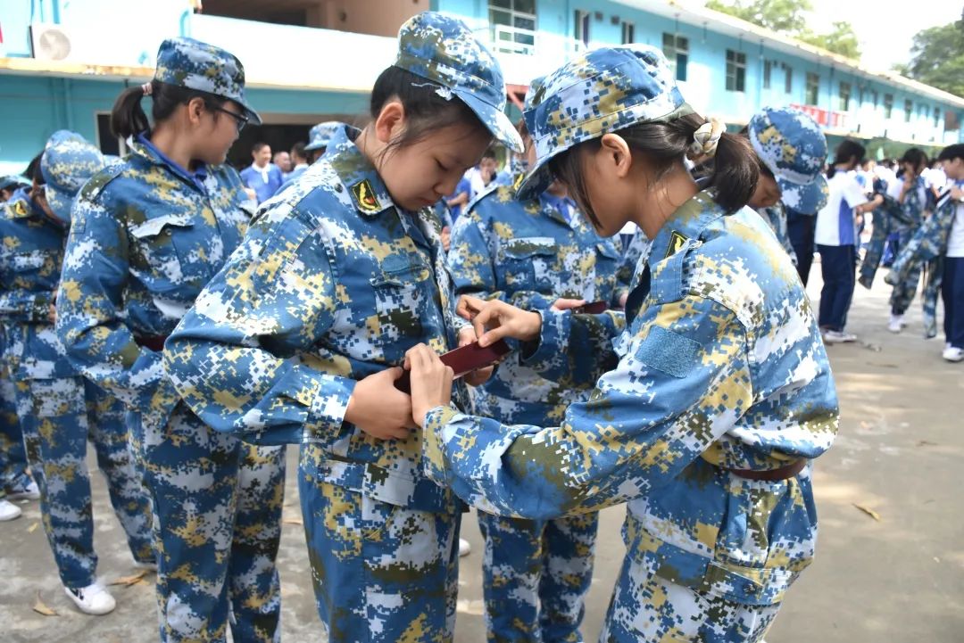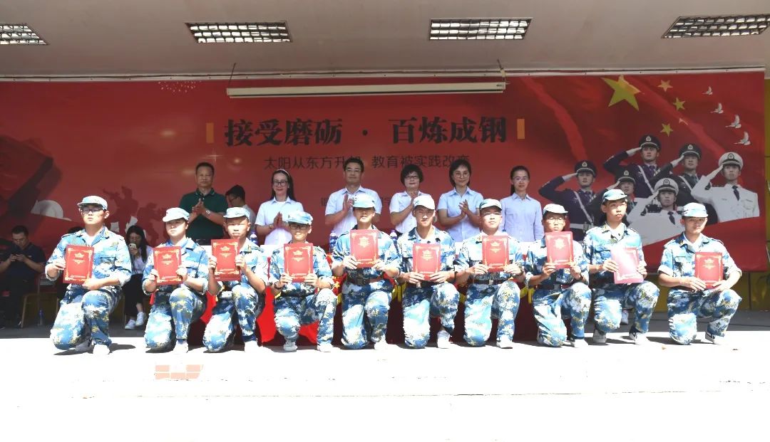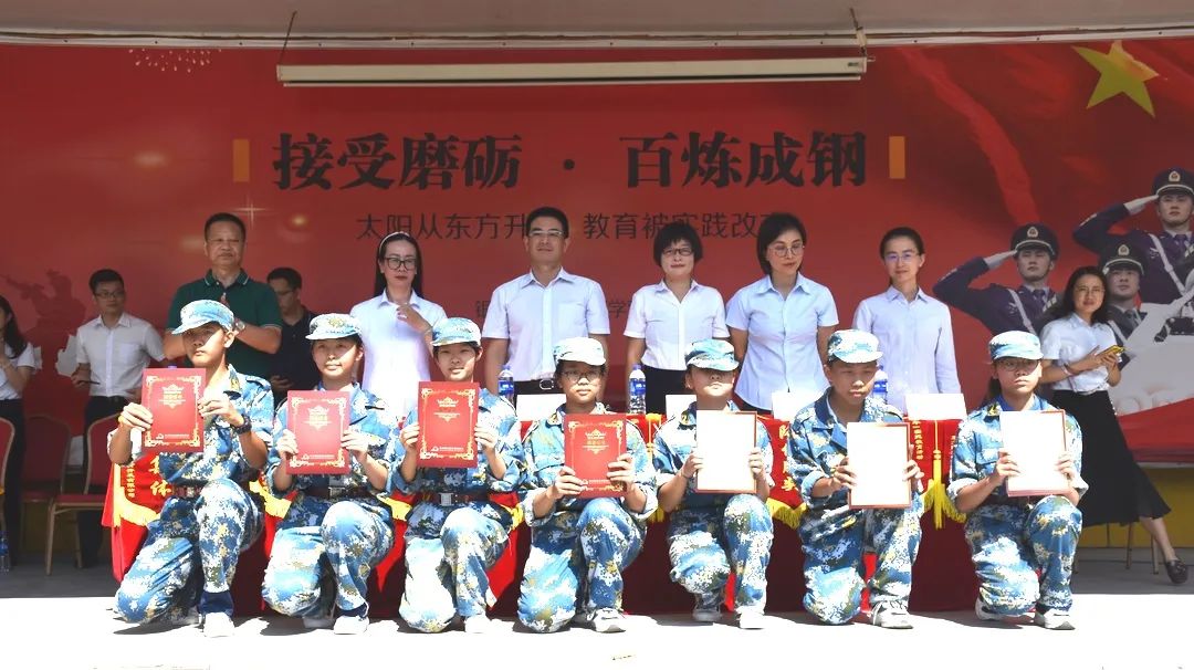 6日上午,同学们迎来了结营仪式,这是对同学们五天军训生活的一个总结和展示。初一年级进行了队列表演,并表演了手语《国家》,在爱心、四十周年队形变化中高唱《我和我的祖国》,场面震撼人心,空气中溢满了爱国之情。初二年级各班一一展示了他们的队旗,并解释其内涵,个个气宇不凡,斗志昂扬;初二年级《你笑起来真好看》歌舞队列表演令人耳目一新,灵动又青春,彰显初中部学子的良好风貌。仪式最后,邓旭副校长为优秀学员和优秀班级颁发了证书,他们刻苦训练,团结进取,积极向上,敢为人先,是同学们学习的好榜样!