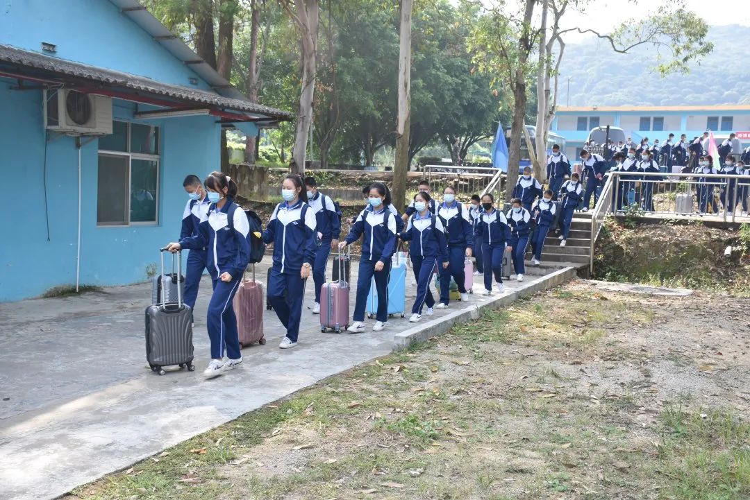 11月2日清晨,阳光正好,微风不燥,初中部学子带着热情,迎着朝阳,整装待发,时刻准备着踏上军训的旅程。随后,在校领导和班主任的带领下,两个年级的学生登上了前往东莞银瓶山训练基地的大巴车。