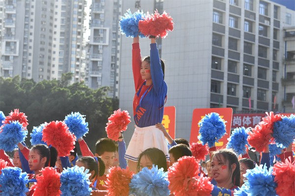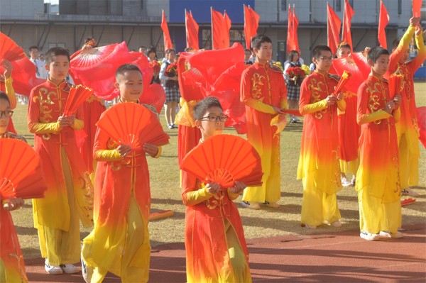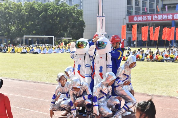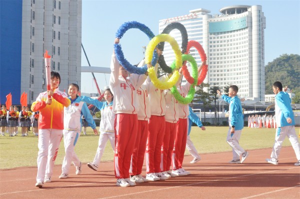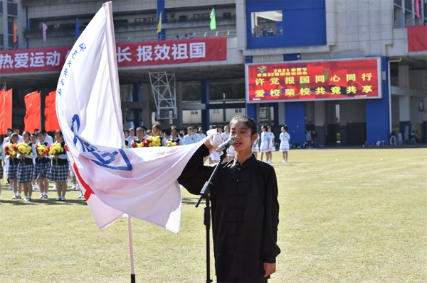 在开幕式的最后,全场观众有幸观看了奥运健儿汤慕涵为初中部师生专门录制的加油视频,她真挚地寄语同学们用拼搏和汗水不断超越自我、实现梦想!