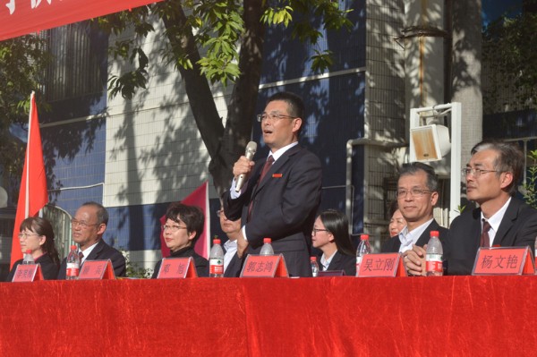 深圳实验学校副校长、初中部邓旭执行校长,集团总部及各兄弟学部领导光临现场。初中部学生处胡晓江主任主持开幕式,整场活动通过网络平台现场直播。