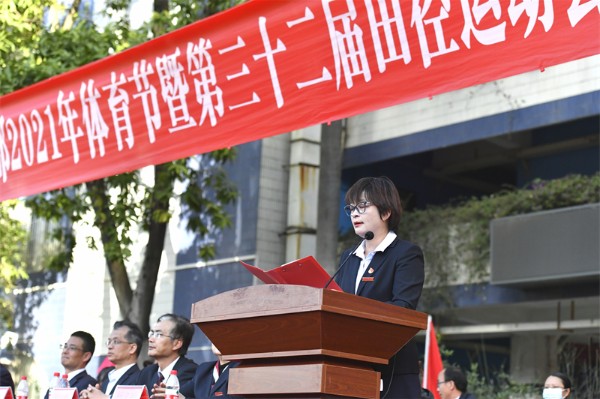 随后,邓旭校长为开幕式致辞,他深情地表达了多年来初中部坚持五育并举和全面育人的初心,肯定了体育学科组和各处室、年级紧密配合,积极作为,因地制宜地开展各项体育活动,不仅体育中考成绩突出,同学们也在体育锻炼中享受乐趣、增强体质、健全人格、锻炼意志。