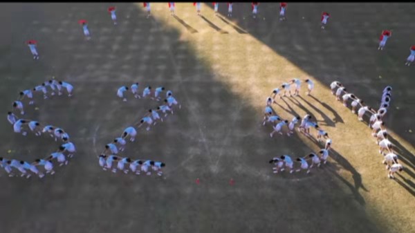 初二年级带来团体操表演“少年”。在轻快的音乐中,同学们充分地展现自我,释放活力,最后组成了“100”这一数字,向建党百年表达深深的敬意。