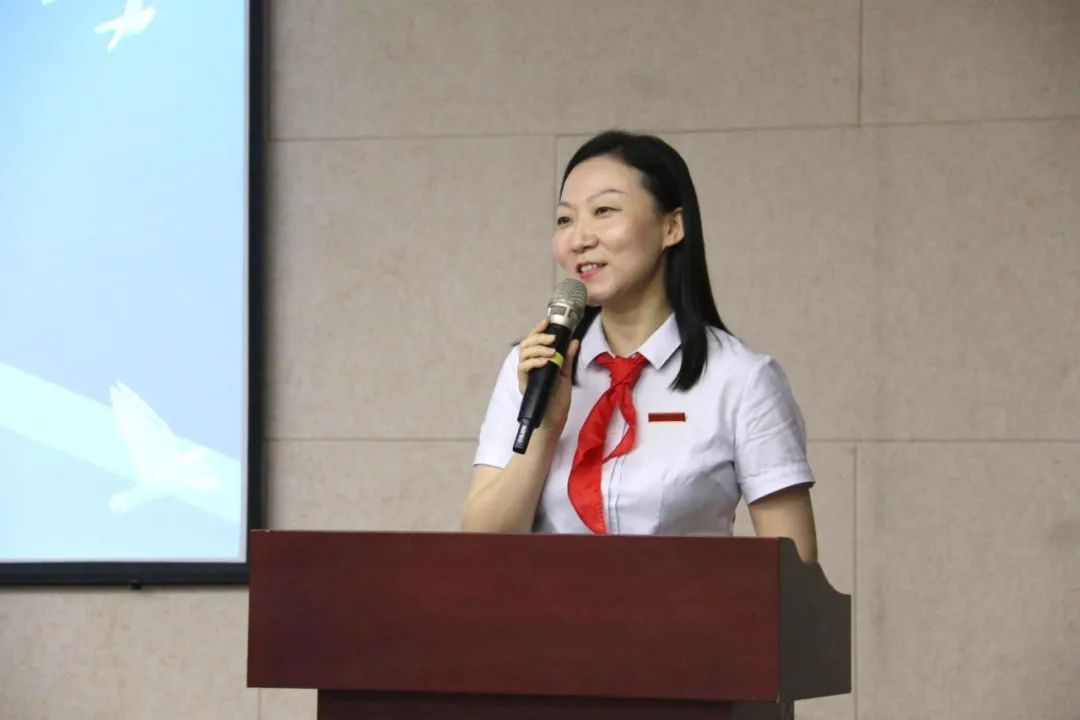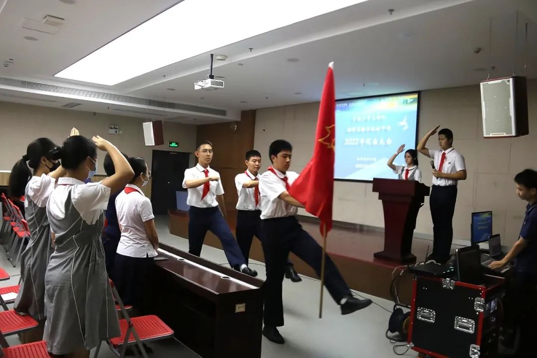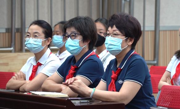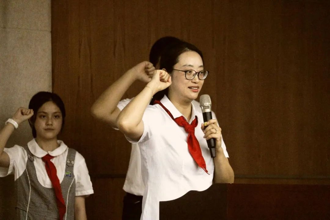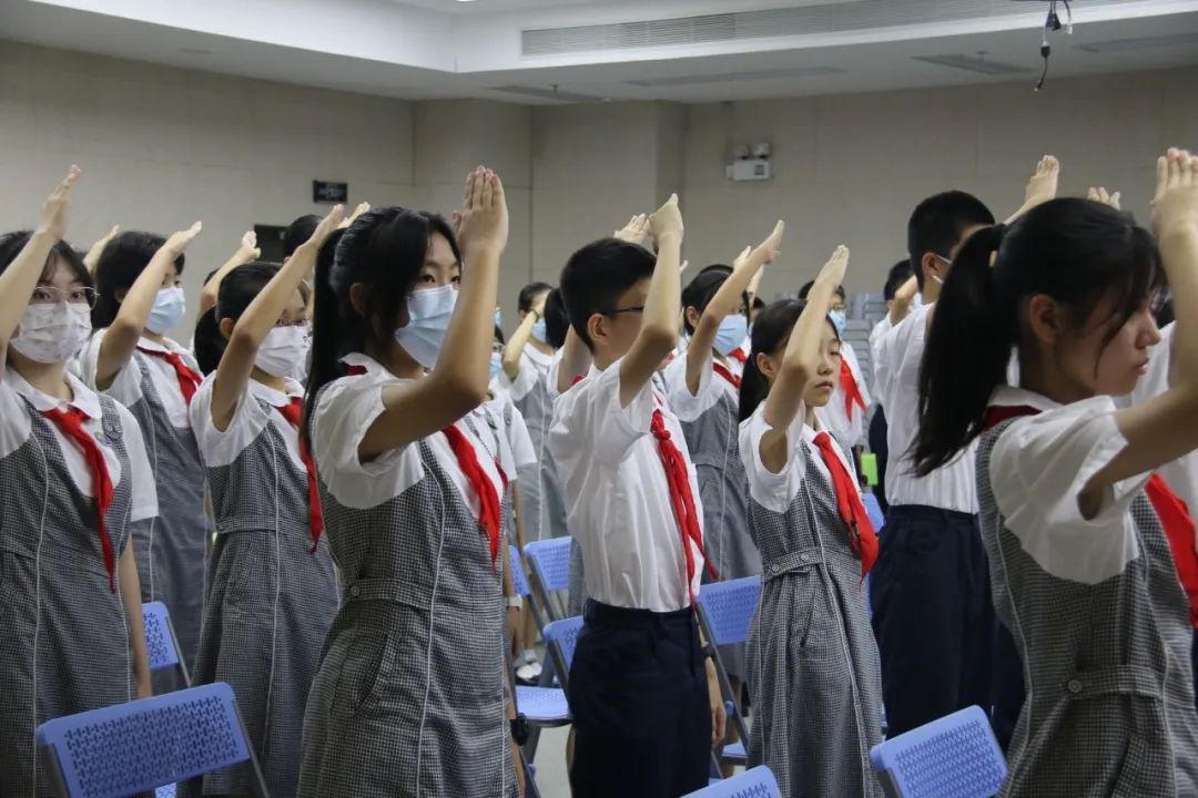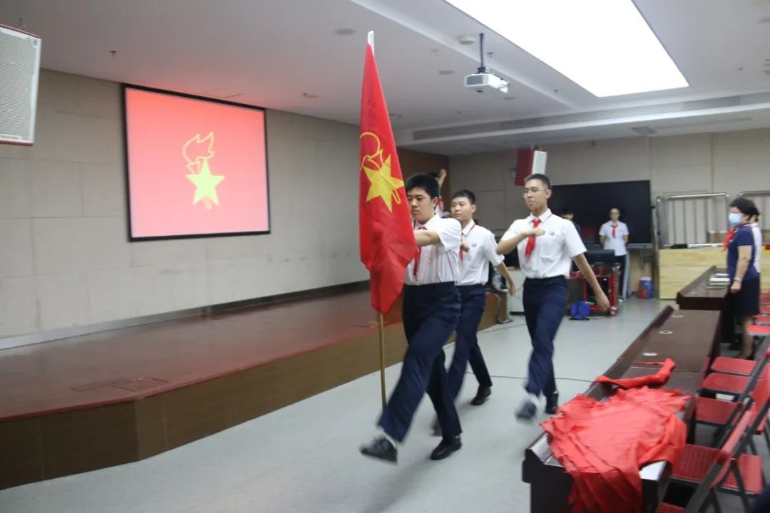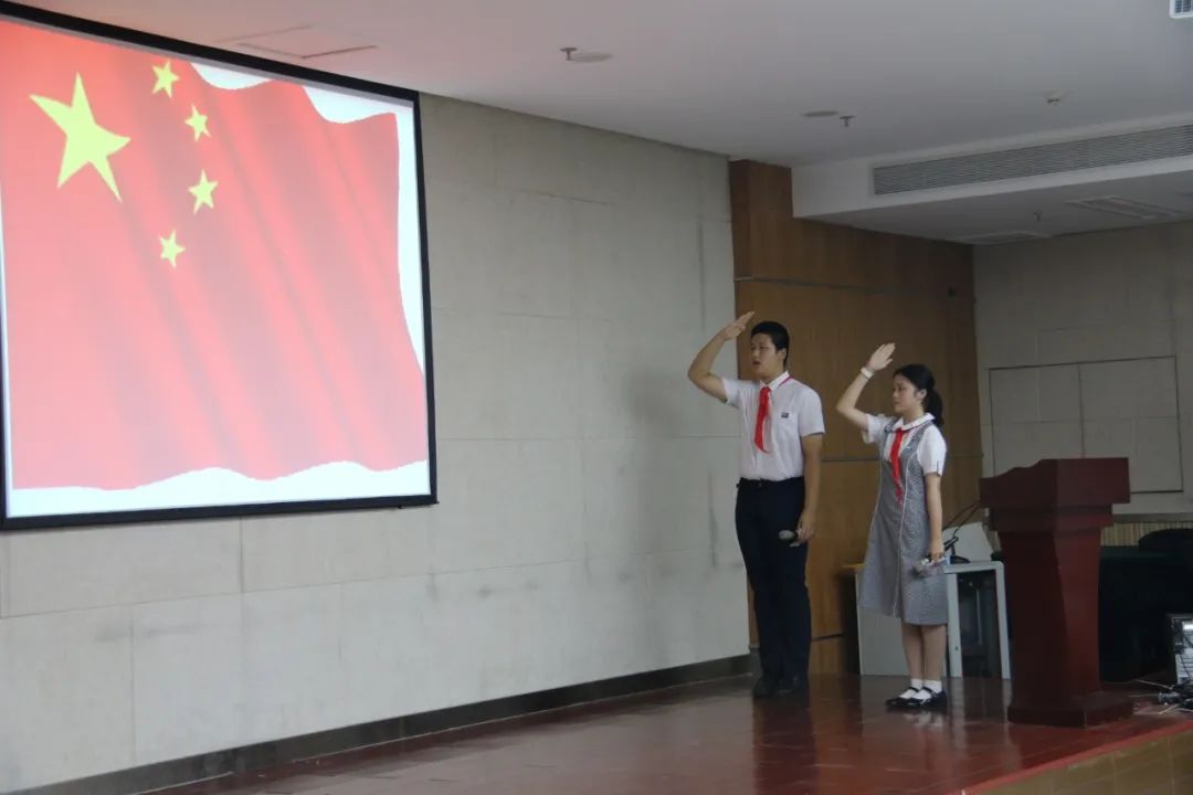在雄壮的国歌声中,大会拉开帷幕。出队旗、唱队歌,满满的仪式感增强了少先队员们的身份意识。