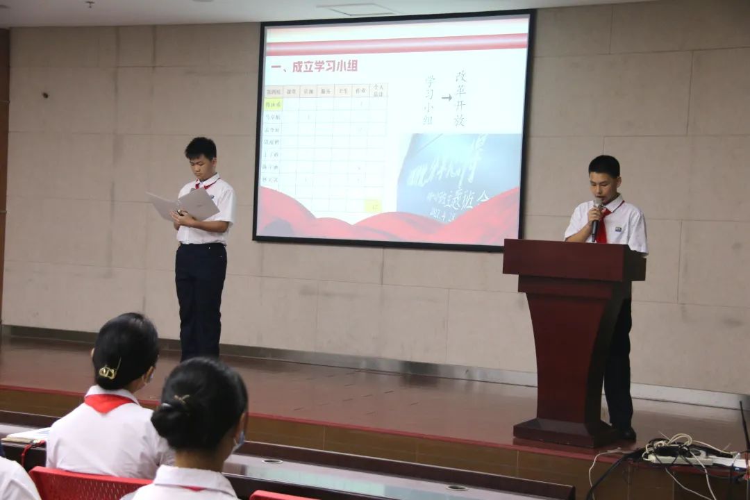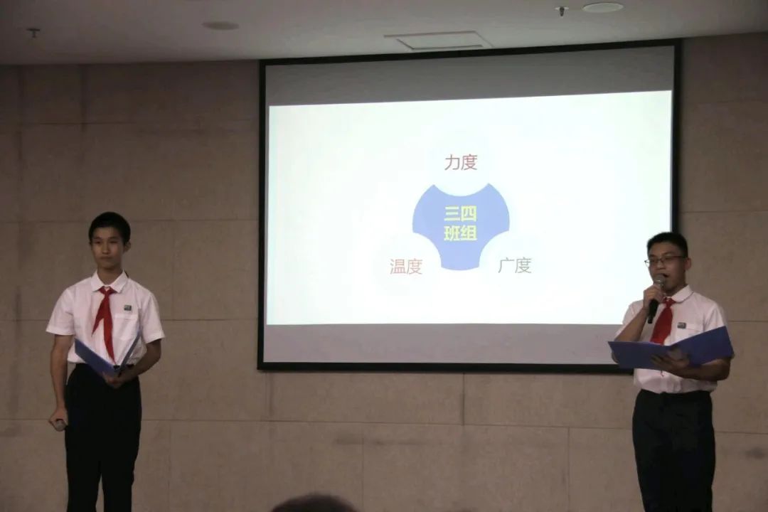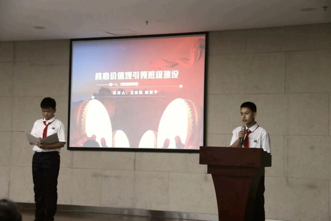 紧接着,大会迎来了振奋人心的环节——初一年级各班代表发表红领巾提案。