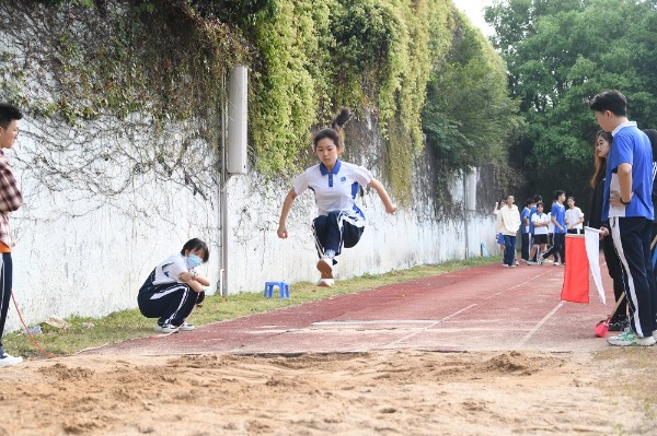 正对主席台的右边,和煦日光照耀,阳光把沙坑染上明亮的白色,映照着自起跑线冲刺腾空而起的跳远运动员如同展翅雄鹰一般的身影。后蹬,冲刺,跃起,连贯如水的动作昭示运动员们在场下练习所挥洒下的无数汗水。雷鸣般的掌声和呼喊,不仅仅是对运动员取得好成绩的祝贺,更是对闪耀在实验学子身上如同宝石般璀璨的体育精神的祭礼。